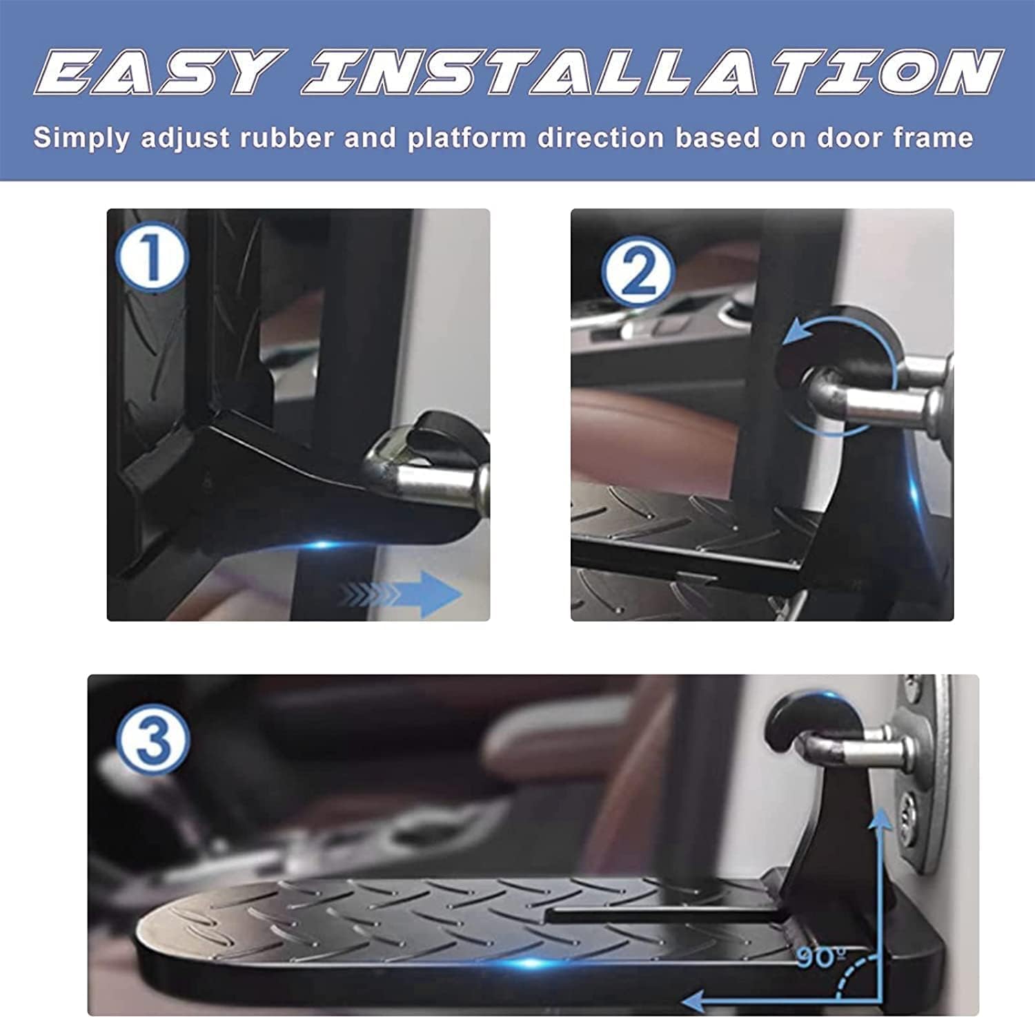 - 【Car Door Foot Pegs Material】 Aluminum alloy, Door step bearing weight: 510 pounds, great for packing luggage, Surf board, or other bulky Items on car roof-rack without any struggle as to make full use of in-car space.